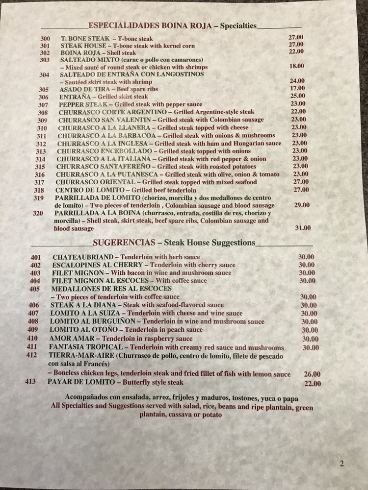 La Boina Roja Steak House in Jackson Heights, NY offers a delightful Colombian steakhouse experience with a wide range of options for meat lovers and vegetarians alike. From traditional Colombian breakfasts like the Mixto La Boina with skirt steak, beef, and sausages, to appetizers like the Tostones con Guacamole and Ensaladas like the Cesar con Pollo, there is something for everyone. The cozy and casual atmosphere, along with the option for outdoor seating, makes it a great spot for groups, families, or a casual date night. With excellent service and a menu full of flavor, La Boina Roja Steak House is definitely worth a visit for a taste of Colombian cuisine in the heart of New York.